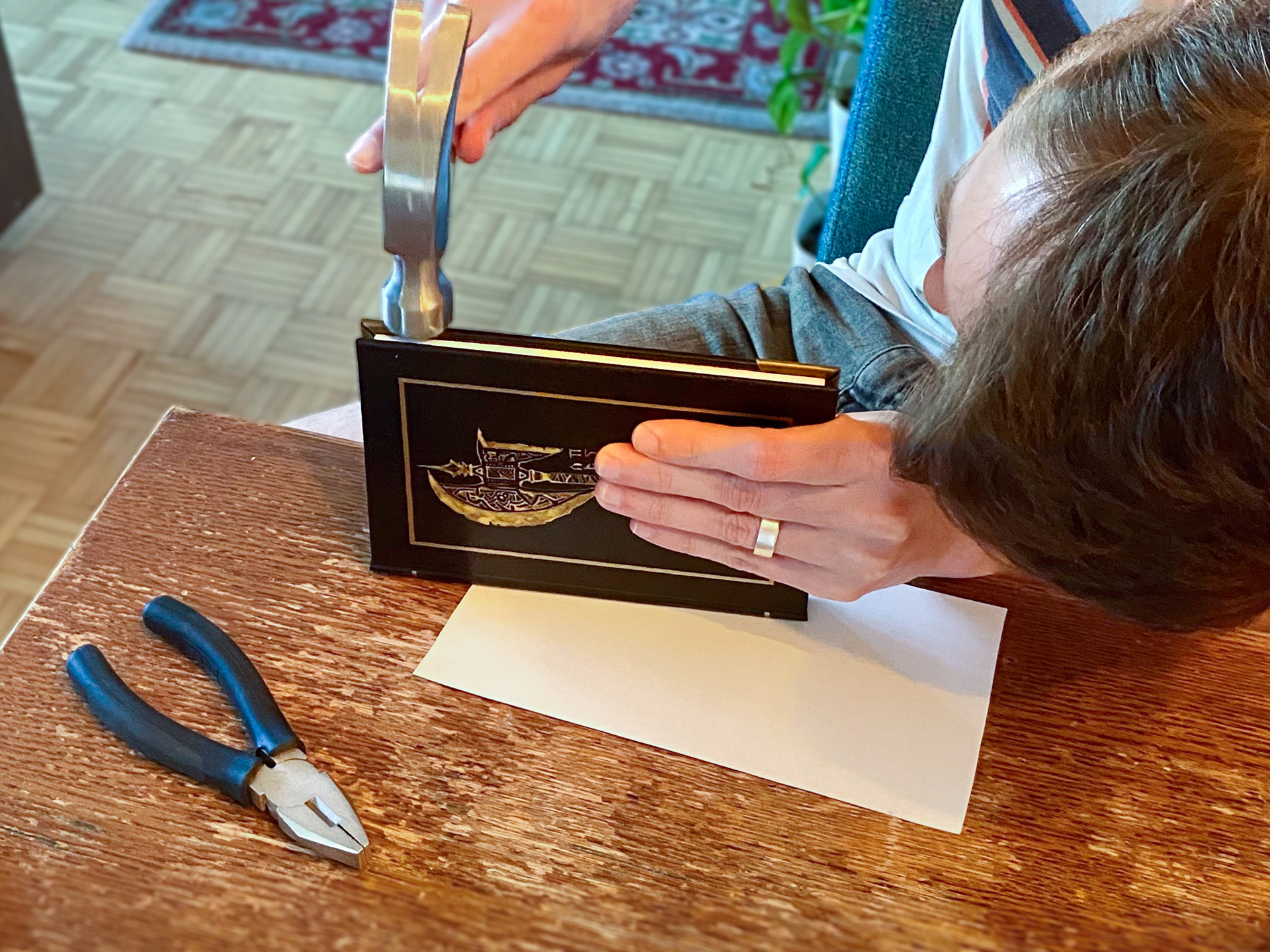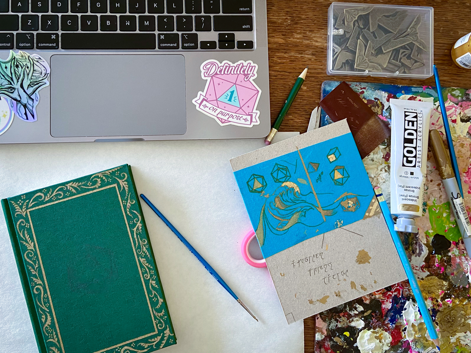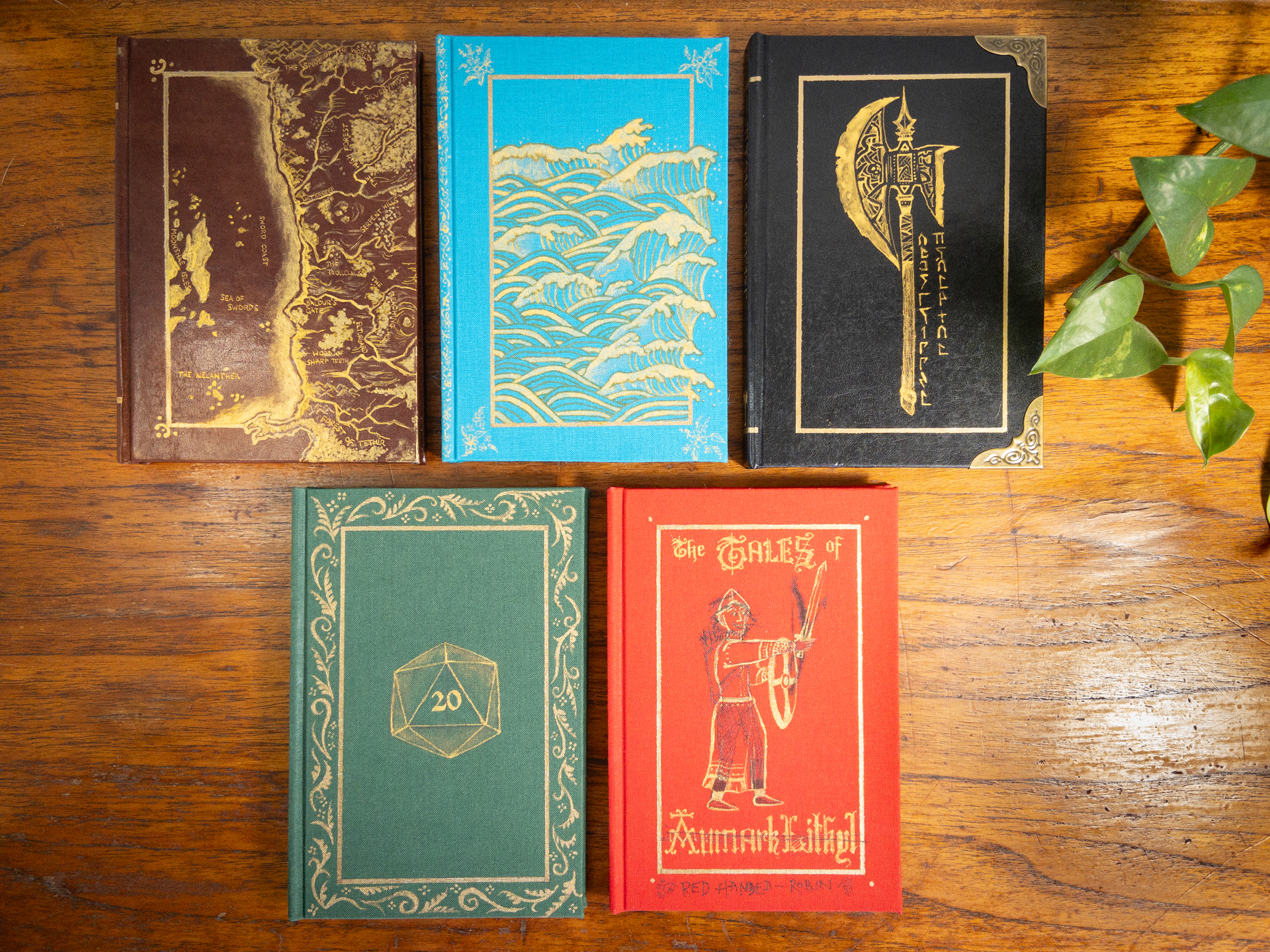 My wife, Alex, plays the character Mairi and to celebrate her two year/100 episode anniversary on the show we created custom notebooks for the other players and DM based on their characters.